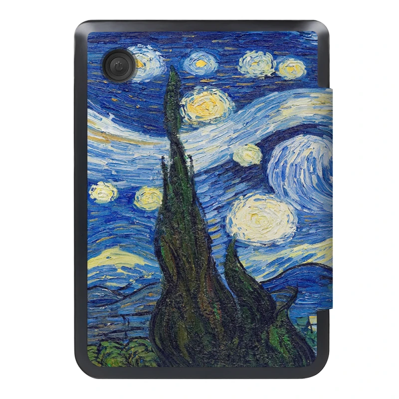Създаден специално за Kobo Clara BW, аксесоарът гарантира перфектно прилягане и достъп до всички портове и бутони. Неговият иновативен дизайн предлага максимална защита без компромис с елегантността.- Уникален дизайн "Звездна нощ": Калъфът е с отпечатана репродукция на световноизвестната картина на Винсент Ван Гог, превръщайки Вашия електронен четец в забележителен аксесоар.