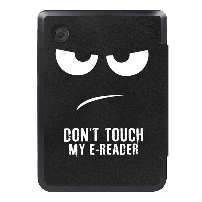 - Уникален "Angry Face" дизайн: Закачливата визуализация на сърдито лице с надпис „DON’T TOUCH MY E-READER“ придава на модела неповторим стил, изразявайки вашето отношение към ценния аксесоар за четене.
