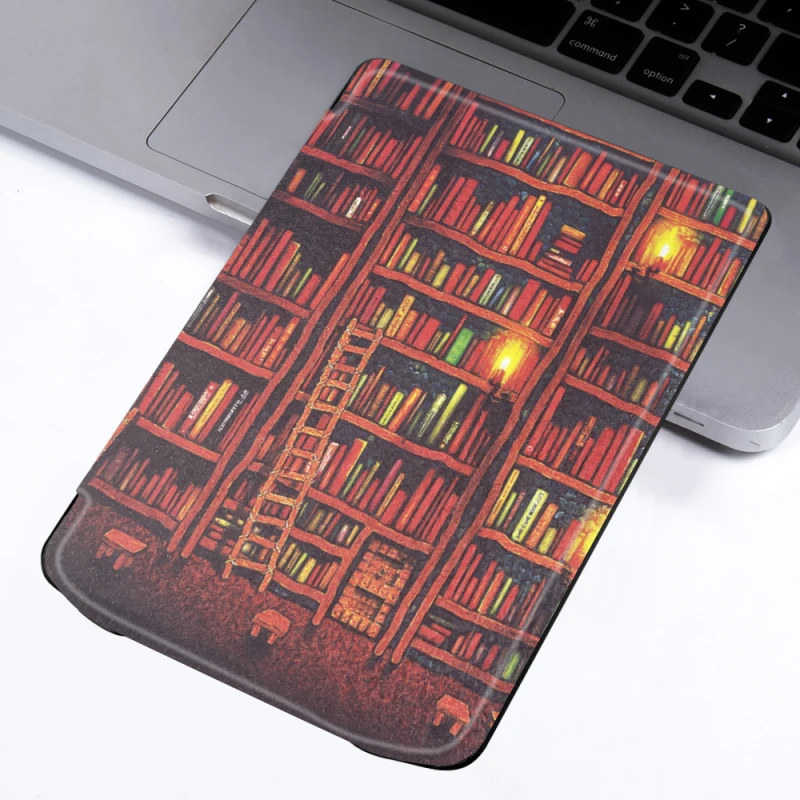 - Превъзходен дизайн „Библиотека“: Вдъхновяващ визуален образ на уютна библиотека с високи рафтове, пълни с книги, подвижна стълба и топли светлини, които създават атмосфера на спокойствие и насърчават четенето. Това е един отличителен e-reader калъф, който ще впечатли всеки книголюбец.