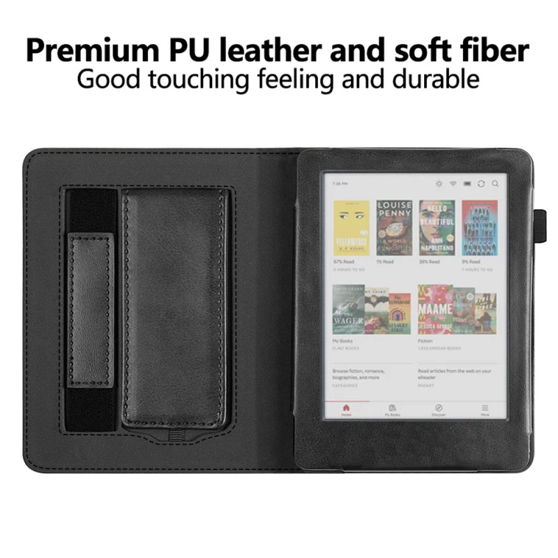 - Магнитно затваряне: Сигурният магнитен механизъм гарантира, че калъфът ще остане плътно затворен, предпазвайки електронния четец при пренасяне и съхранение.