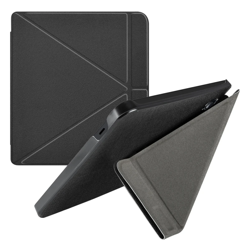 - Удобна стойка: Оригами дизайнът позволява да позиционирате електронната книга в различни ъгли за гледане – идеално за четене на маса или бюро.