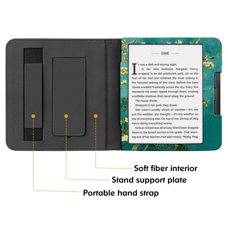 - Подсилена предна и задна част: Допълнителна защита срещу огъване и натиск, осигуряваща дълготрайност на електронната книга.
