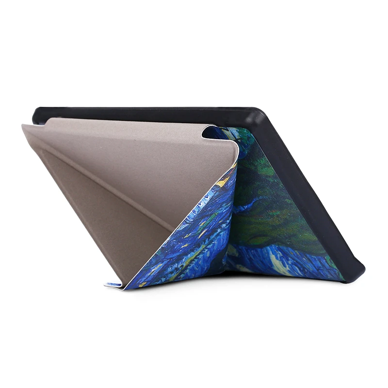 Калъфът GARV Origami за Tolino Vision 5 е елегантен начин да вдъхнете нов живот на вашето устройство и да го защитите по изискан начин. Уникалният аксесоар не само предпазва вашия електронен четец от надрасквания и удари, но и го превръща в произведение на изкуството. С вдъхновяващ дизайн, пресъздаващ емблематичното платно „Звездна нощ“ на Ван Гог, продуктът е перфектен спътник за всеки почитател на четенето и изкуството.